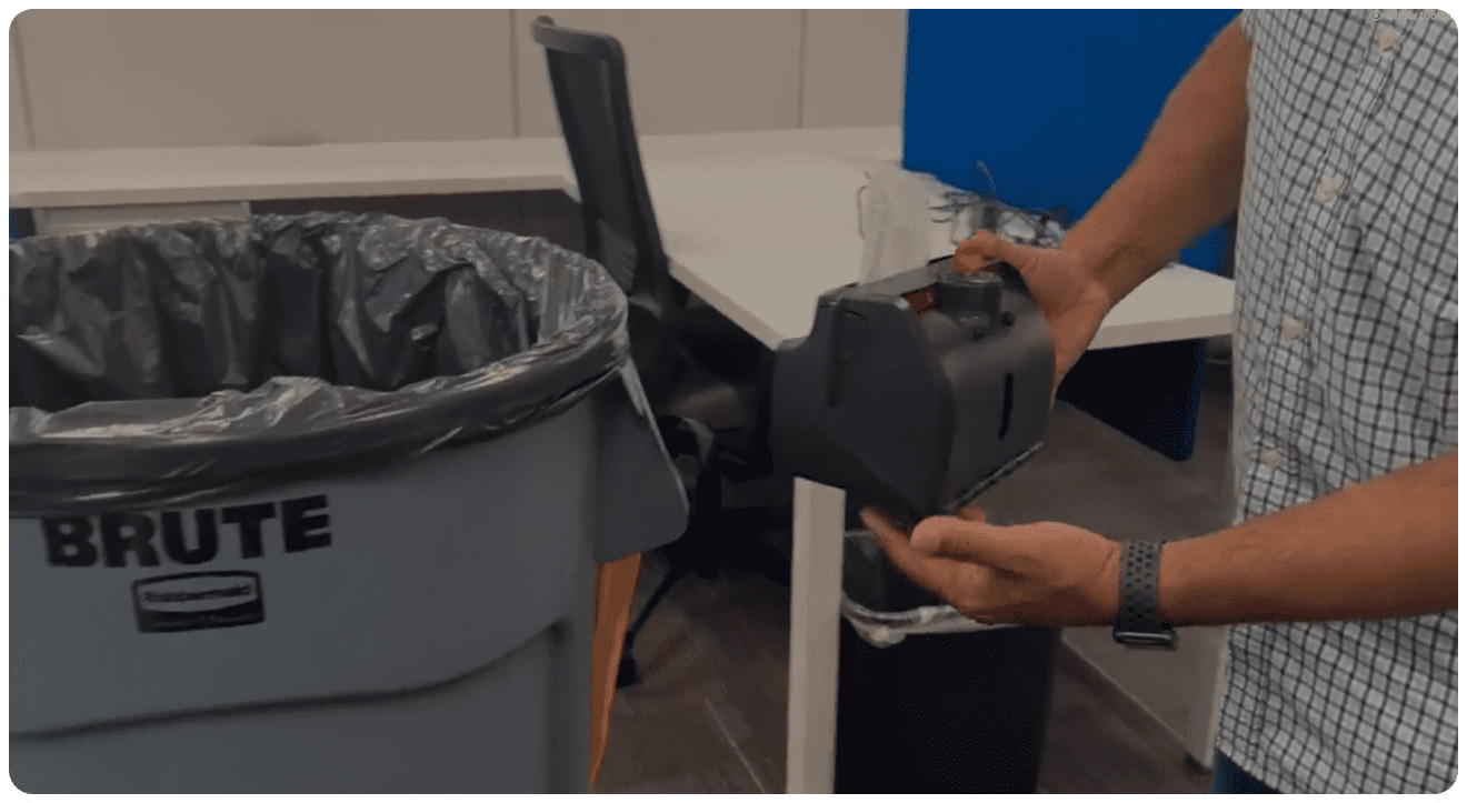 We know that a roll-out of a new product into the field can be a logistical and time-consuming nightmare. That is why, as janitorial professionals, we designed to be installed on any 44-gallon brute by a janitor in the field, in minutes, without tools. Simply clean the brute with the wipe provided, peel off the tape backing on The Bag Dispenser, and hold in place for a few seconds. No waits. No fuss. No tools. Just next-gen technology, installed on any 44-gallon brute in an instant.